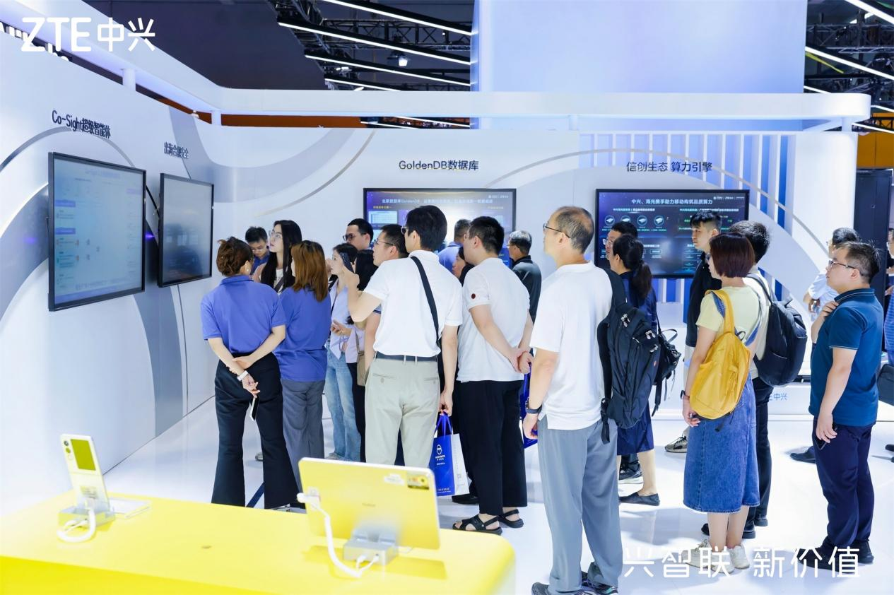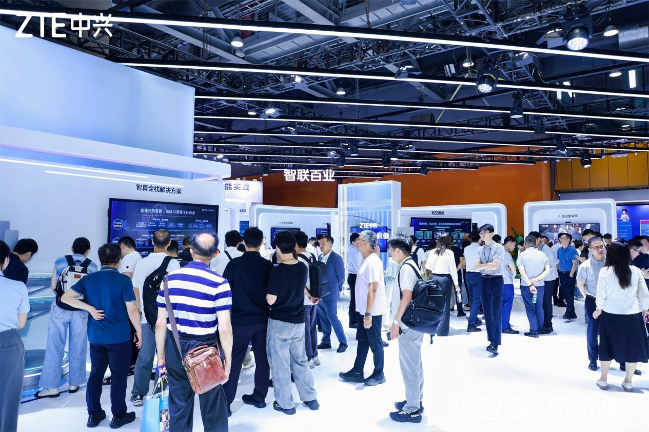 正在“智联百业”展区,中兴通信全栈智算处理方案通过硬件取软件双轮驱动,